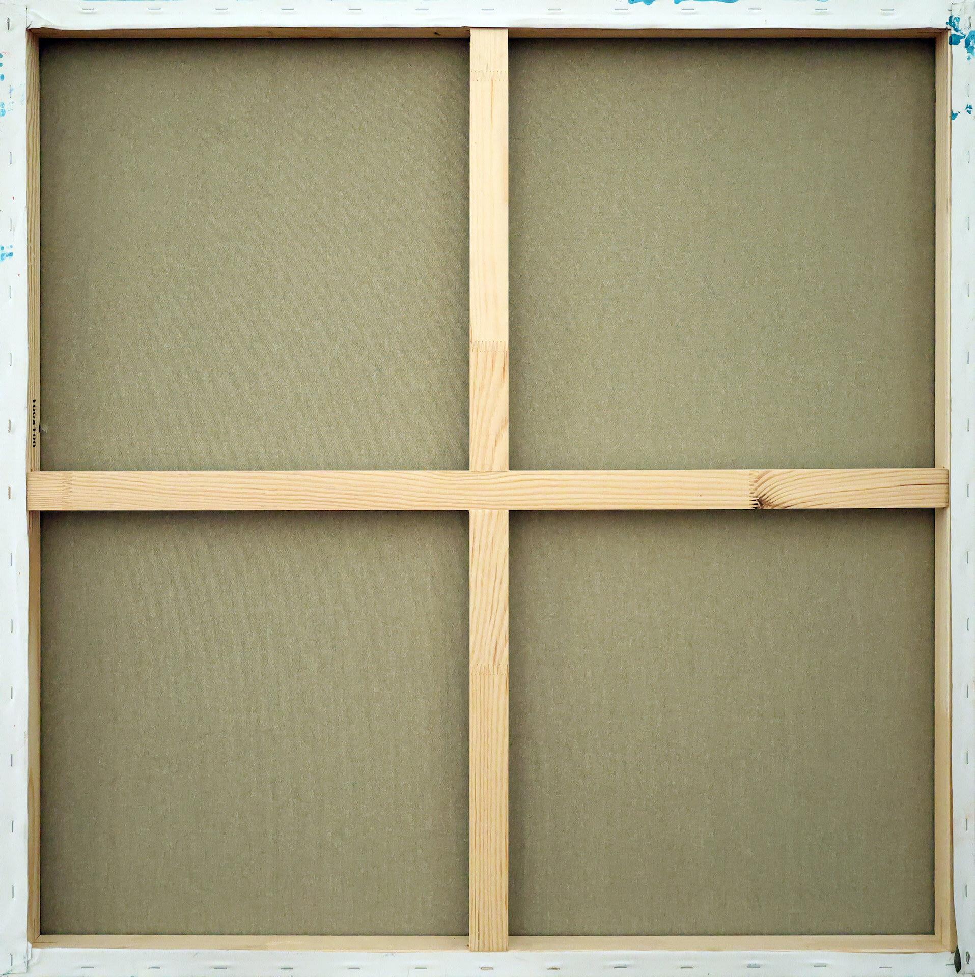 Acrylic, stencil and spray paint on linen