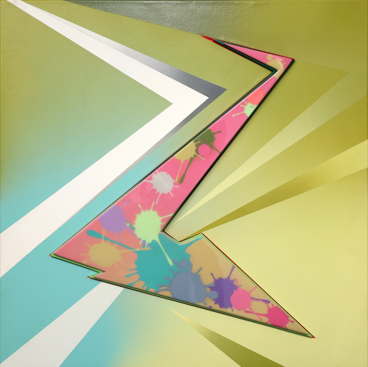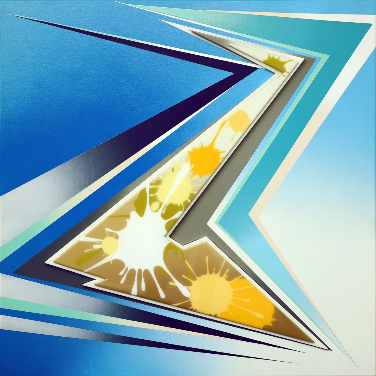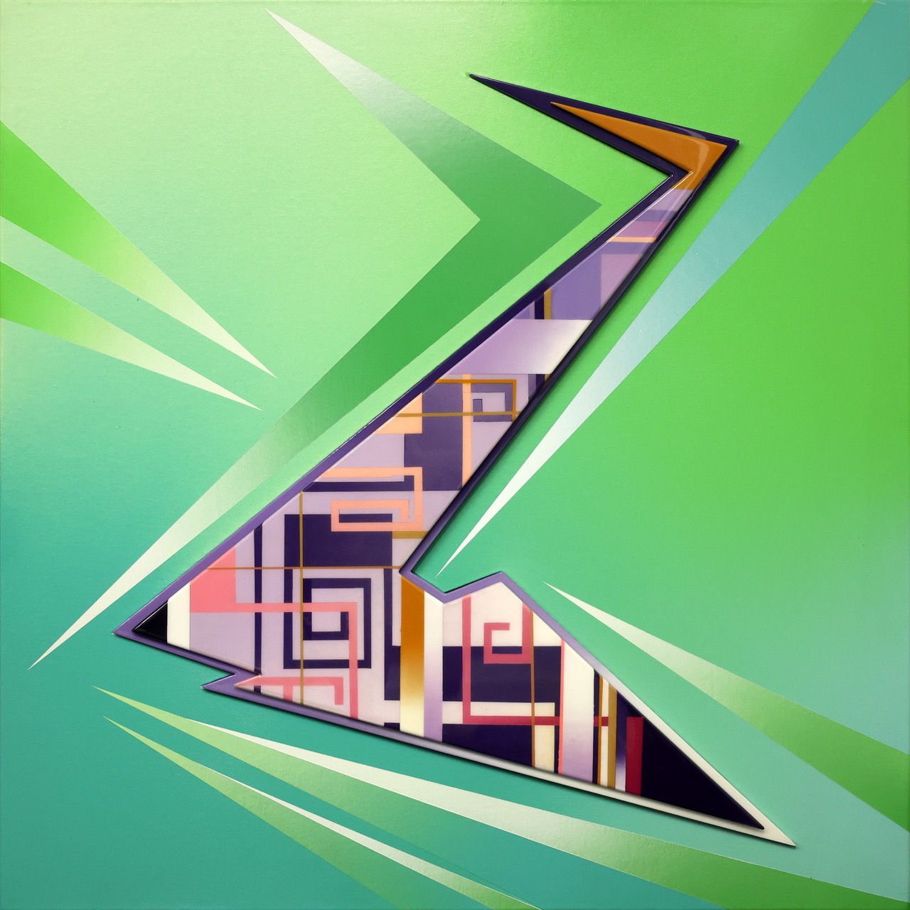 Since relocating to Thailand in 2015, Goldie has expanded his visual practice even further. His works from this period include portraits of local T-girl culture, later developed into limited-edition hand-finished prints, as well as more abstract compositions such as Three Suns in the Glass City (2019) and the jazz-inspired Lullaby of Birdland (2020). These paintings channel the dynamism of modernism while echoing the vibrant palettes of Albert Irvin and Abdul Haqq.