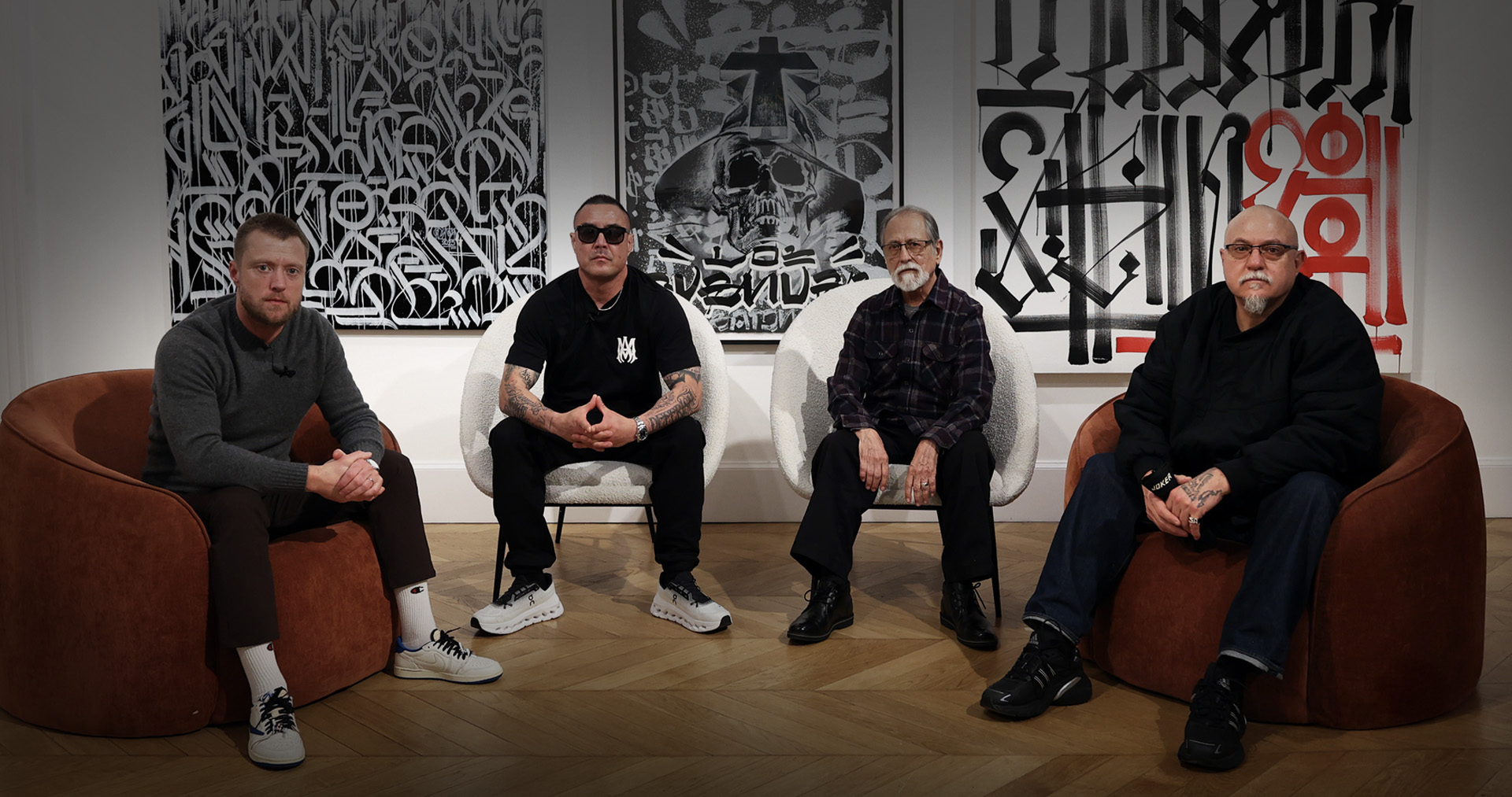 ‘Los Angeles: A Visual Lineage’ brought together Chaz Bojórquez, DEFER, Estevan Oriol and RETNA in the same space for the first time outside of Los Angeles. That fact alone carries historical weight. These are not simply four artists with shared geography — they are four of the defining figures in the evolution of Los Angeles’ visual culture, representing more than five decades of artistic development rooted in neighbourhood identity, Chicano lettering traditions, graffiti, abstraction and photographic documentation.
